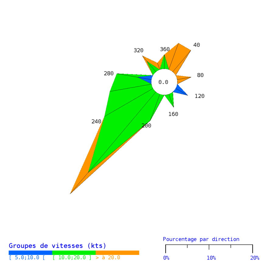 Les vents provenaient majoritairement du secteur Sud-Ouest.