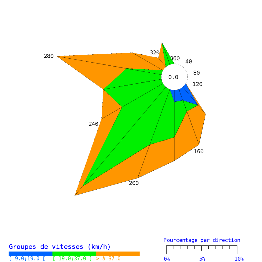Les vents provenaient majoritairement du secteur Sud-Ouest et dans un second temps, d'Ouest-Nord-Ouest.