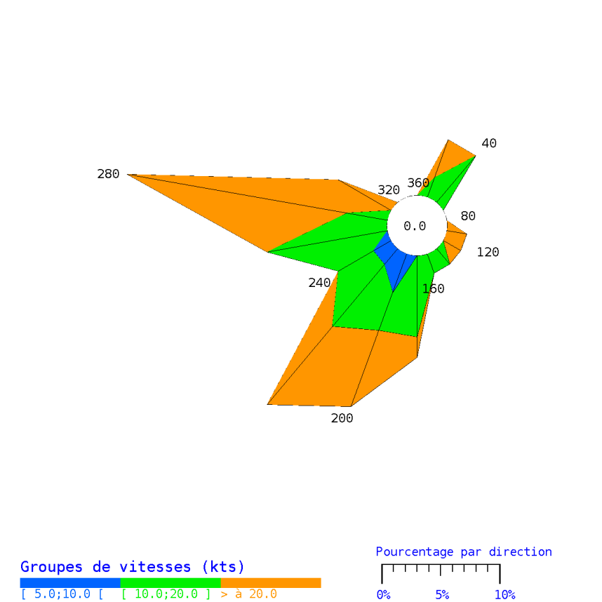 Les vents provenaient majoritairement des secteurs Ouest-Nord-Ouest et Sud-Ouest.
